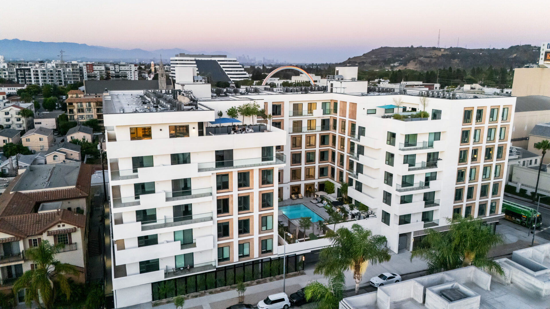 Replacing an auto-repair shop, this community will be a 139-unit multi-family development located across the street from Sony picture studios. The west-facing U-shaped design is anchored by a central courtyard allowing extensive light and air into every unit while allowing the pool to receive constant sunlight.